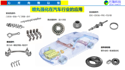 齒輪在機加成型、熱處理中等工藝中,表面必定產生拉應力,此拉應力在齒輪運行中破壞齒輪表面,易造成齒面腐蝕、齒根斷裂等事故,所以,引入噴丸強化工藝,消除拉應力,增加壓應力,提高齒輪零件表面硬度,大幅提高齒輪的使用壽命。例如:汽車變速器齒輪+齒輪軸+帶輪+同步器、后橋螺傘齒輪+差速器齒輪等等均需要通過回轉門轉臺式數控噴丸機進行噴丸強化。