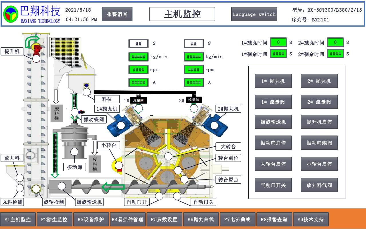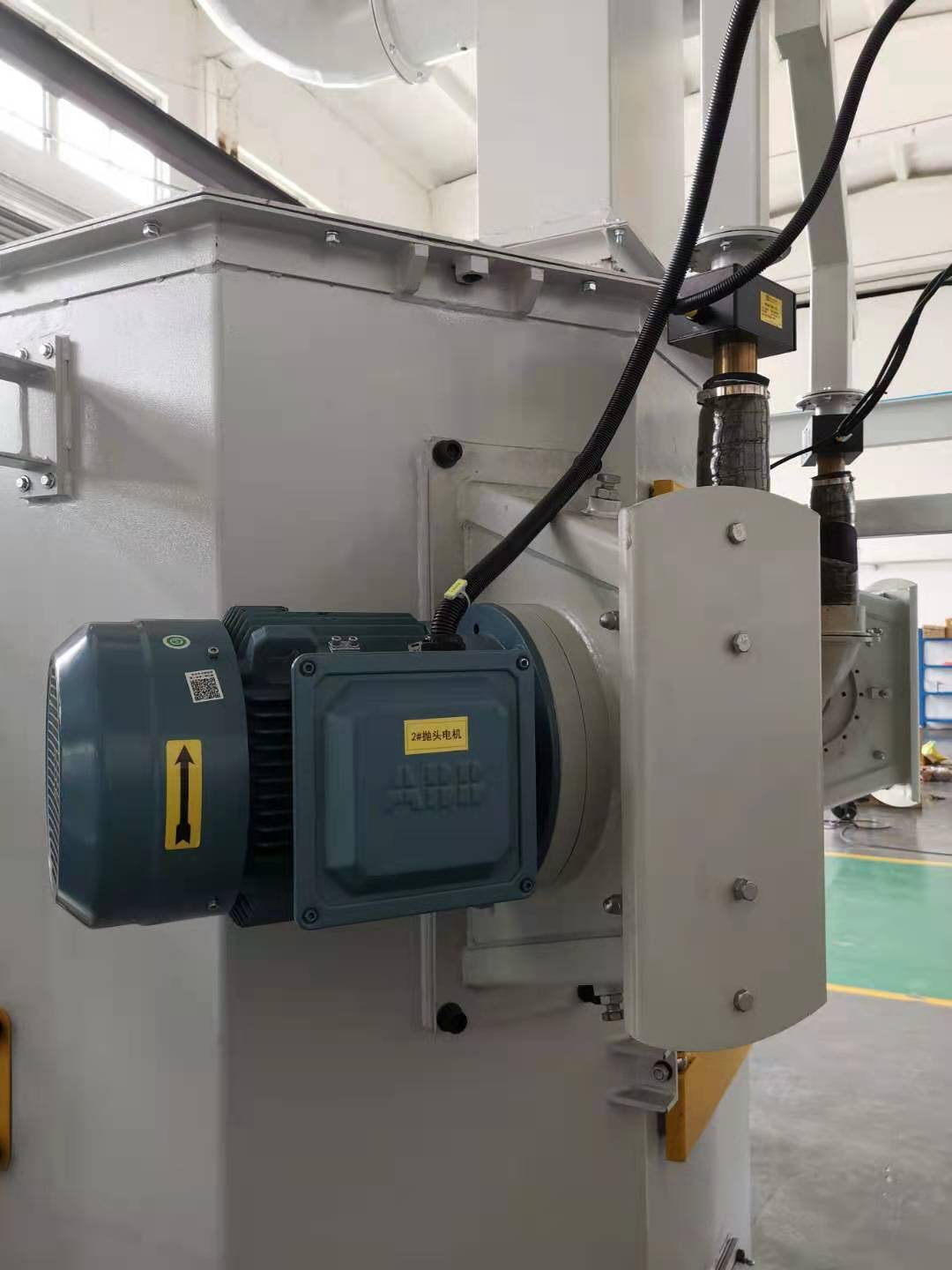 5)拋丸器單元采用2臺B380/15KW-ABB變頻電機,美國進口590-24電磁流量閥,拋丸量120kg/min;