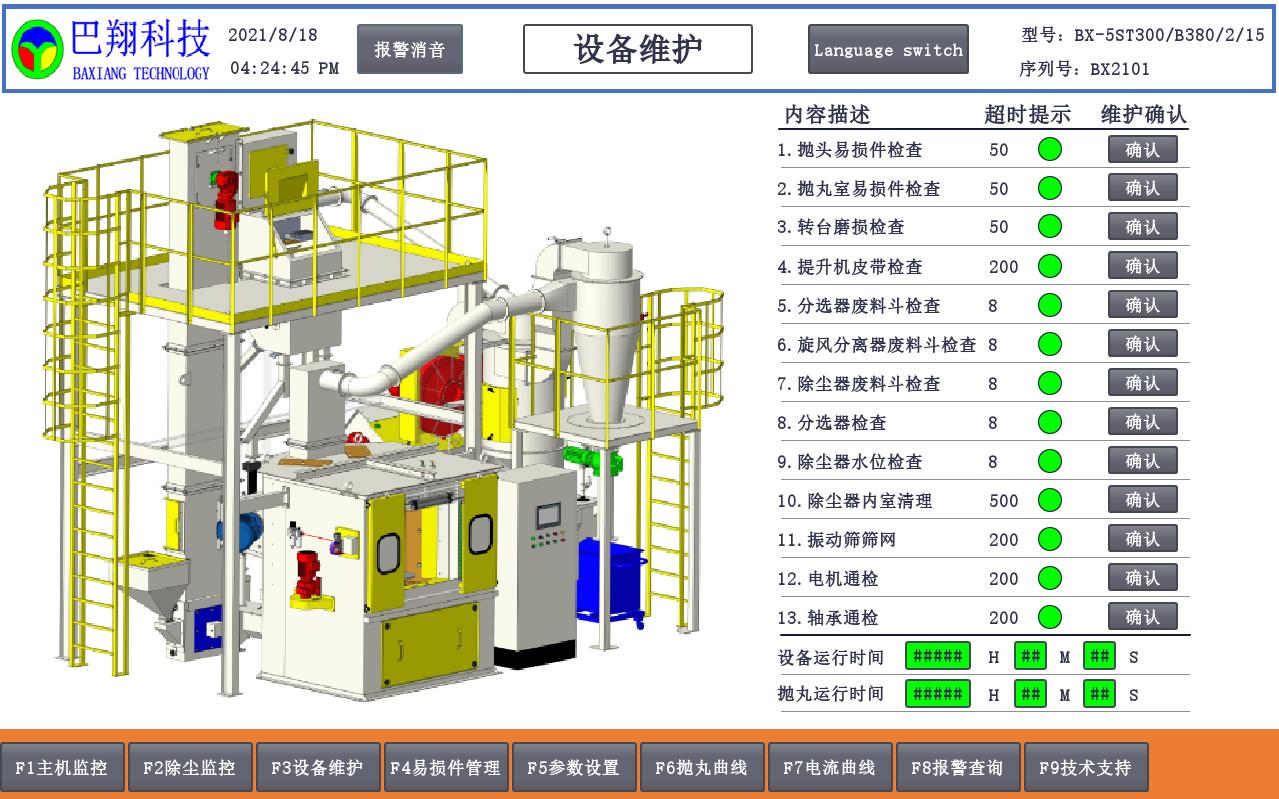 3) 丸料回收單元采用推料螺旋+提升機的機械回收模式,全面回收拋丸循環的丸料;
