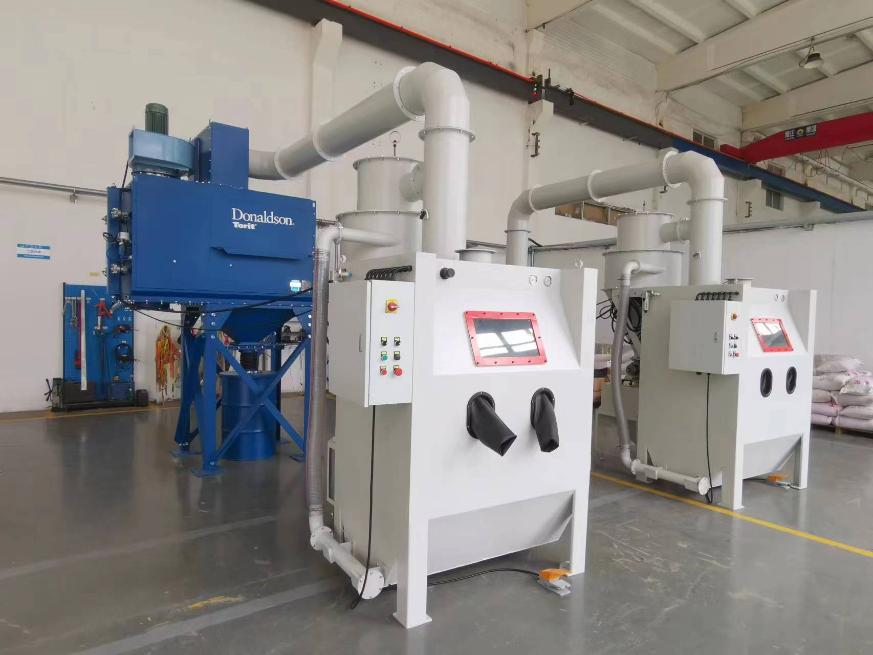 湖南株洲中國航發(fā)某航空企業(yè)訂購的2臺噴砂機發(fā)貨,一臺使用河砂配置美國唐納森除塵器,一臺使用剛玉砂配置威爾登除塵器,設備用途為航空零部件噴砂清理。